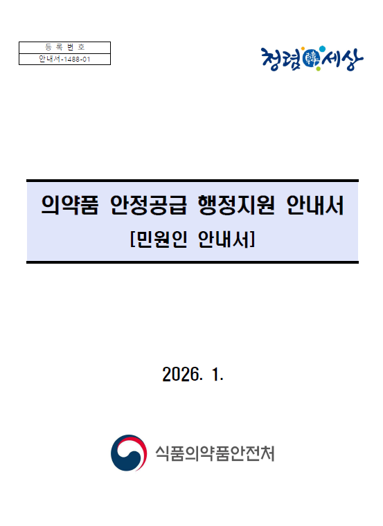 「의약품 안정공급 행정지원 안내서」(민원인 안내서) 제정 알림 자료가 공개 되었습니다.