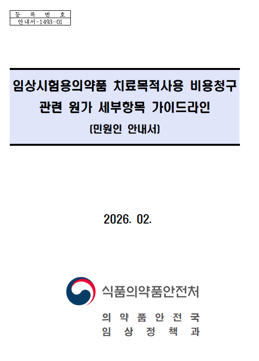 「 임상시험용의약품 치료목적사용 비용청구 관련 원가 세부항목 가이드라인 자료는 '2026년 02월 26일' 자로 식품의약품안전처의 홈페이지에 게시 되었습니다.