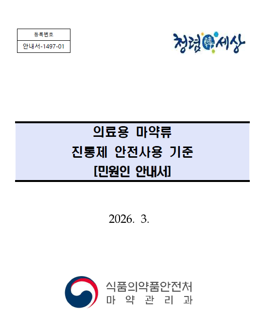 의료용 마약류 진통제 안전사용 기준 자료는 '2026년 03월 06일' 자로 식품의약품안전처의 홈페이지에 게시 되었습니다.